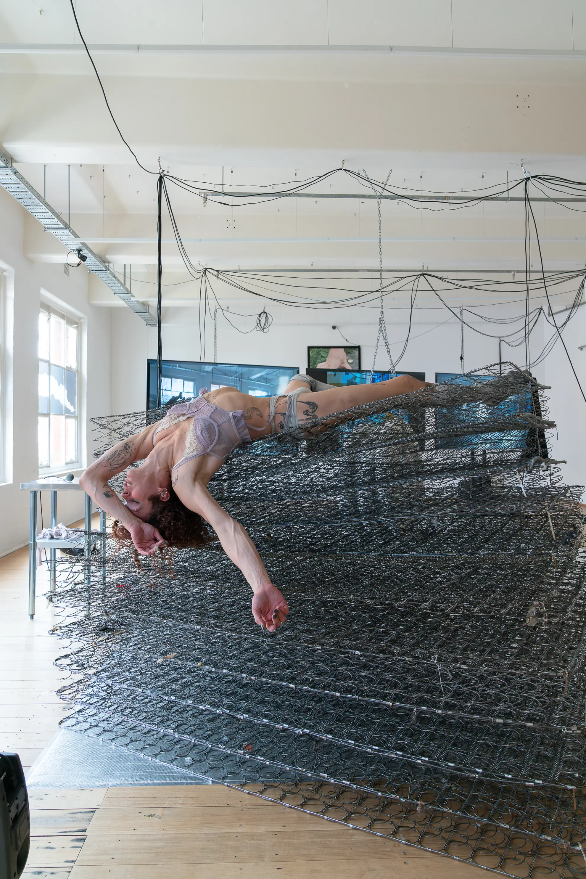 The mattress torn down to its inner form seems more like a cage. That reduction is a modernist gesture. Shed anything in excess. The result is not the serenity of pure Platonist form but the menace of bare wire.