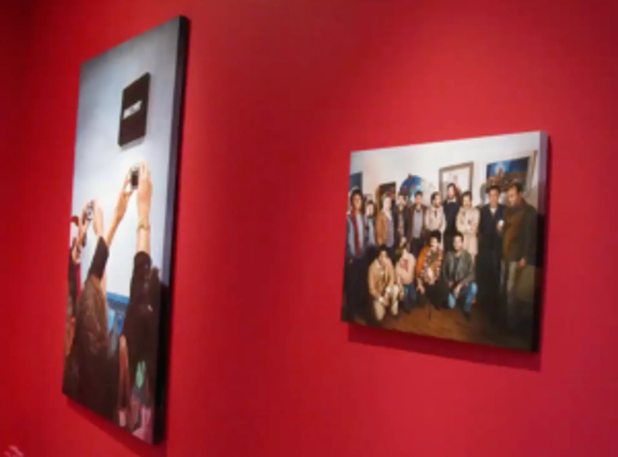 After some searching, I found that the 'photograph' could be attributed to artist Khalil Rabah. It was part of a project in which he sent some photographs of exhibitions in Palestine to be painted as realistic paintings in China. This group of works constituted the first Palestinian art archive made in China.