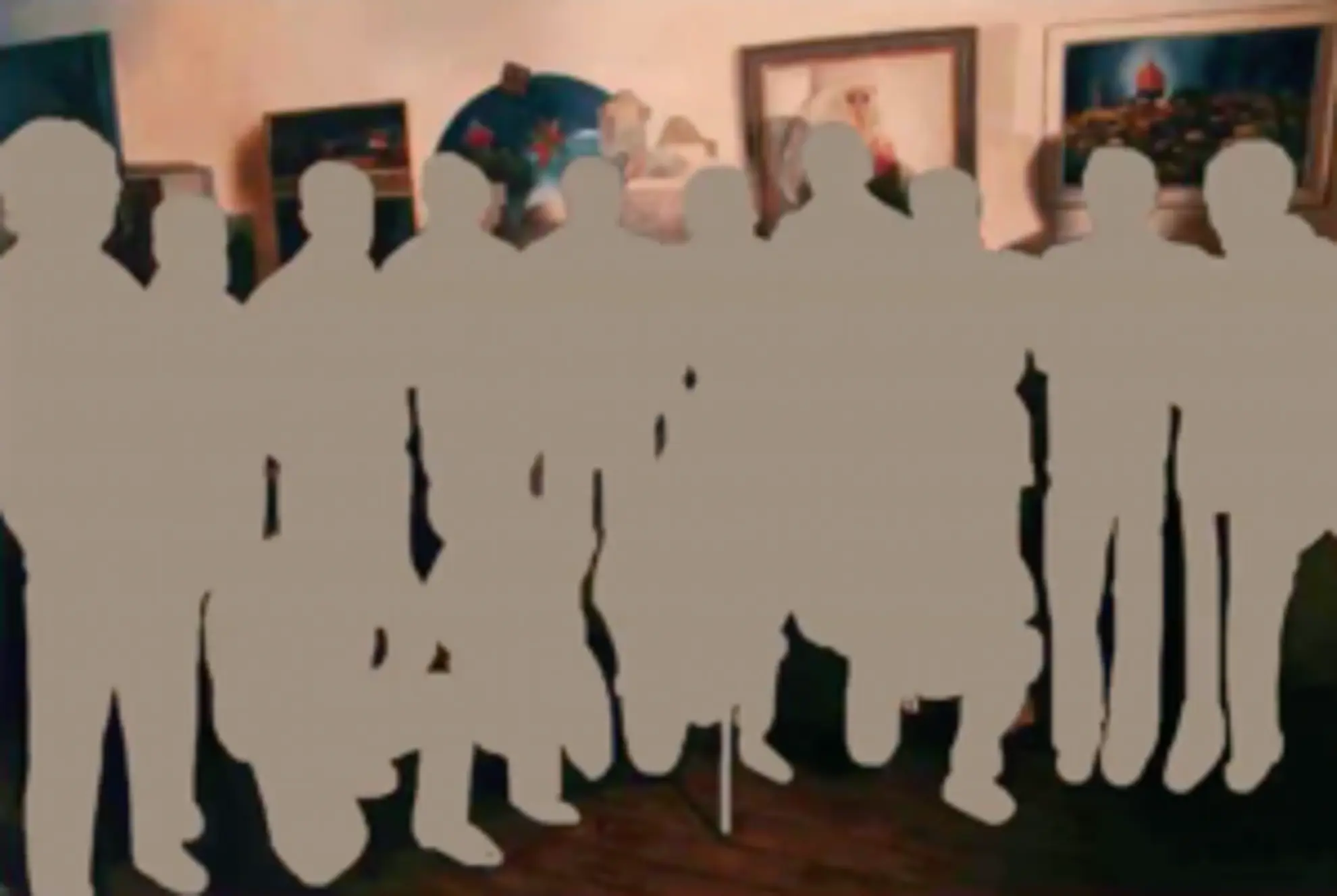 I was told that the paintings that appear in the background are currently either in museums outside Palestine, or that they were lost alongside other artworks that went missing throughout the history of Palestine, for different political reasons.