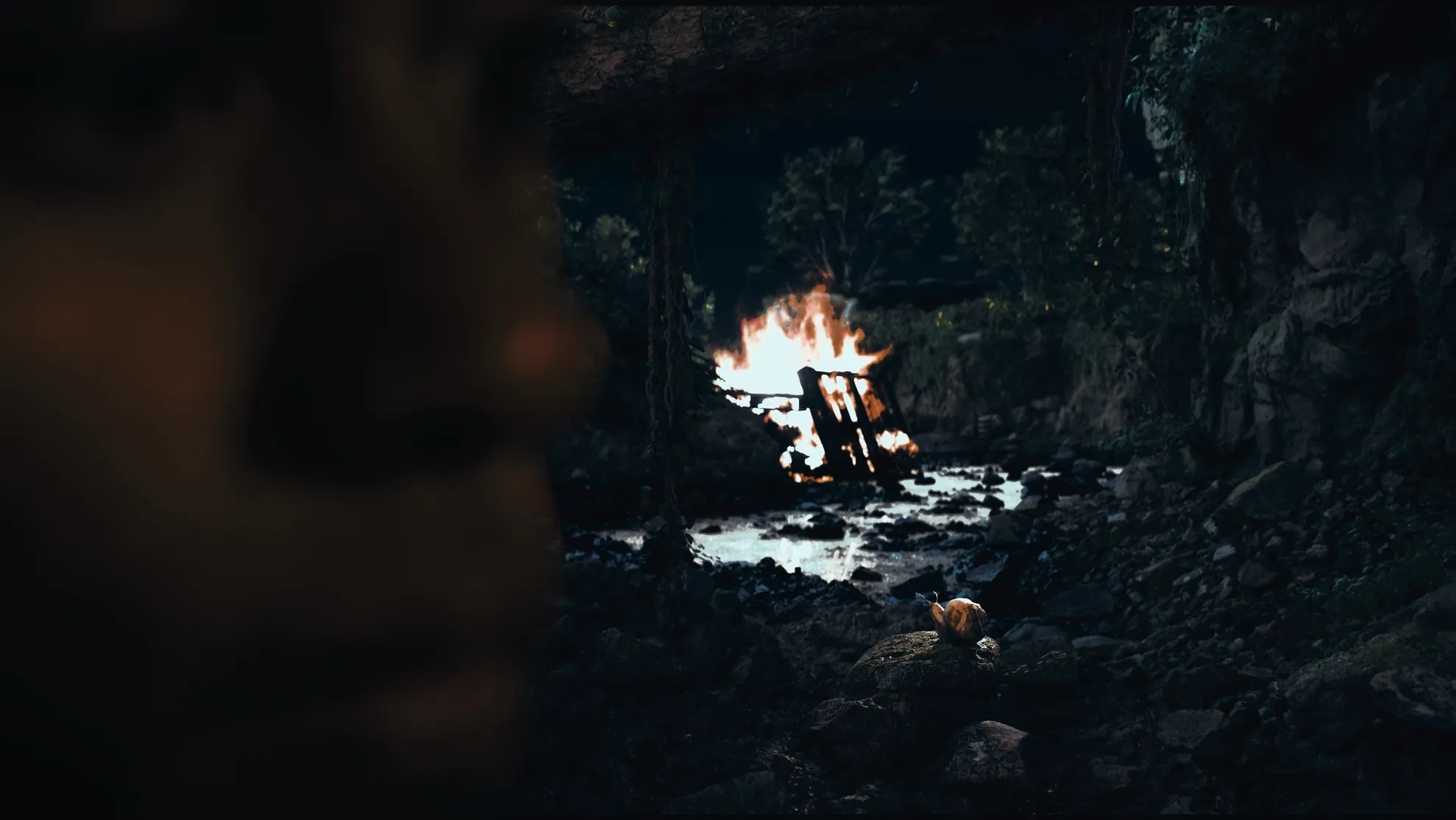 While the cinematically spare use of light in these two most recent video works is partly an acknowledgement of the disorienting confusion of our much-discussed ‘post-truth’ reality – with its signals of rising fascism – it would be disingenuous to overlook nighttime’s other offerings: celebration, communion, rest. And, snails remind us: cover and protection. (Snails’ preference for night allows them to avoid both predation and desiccating heat.) Night is also when we might talk fearfully with our partners and friends about love, war or a catastrophically off-kilter planet. Fundamentally, it is catastrophe that blankets Extinguishing Hope.20 Its ‘rave at the end of the world’ ambience, with its wasted landscape, flickering fire and sounds of distant revelry, is evoked by the words that close the looping script: ‘A way to savour the doomed world’.