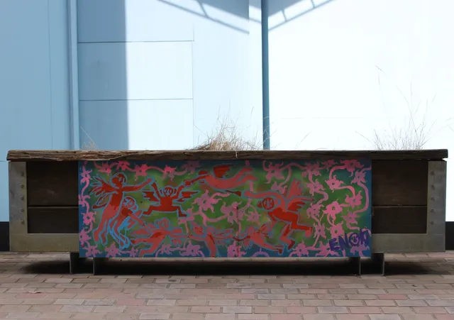 A series of paintings were created for the planter boxes in Collingwood Yards as part of West Space's Overgrown project, an experimental, long-form collaboration between local artists and Yarra Youth Services, Fitzroy.