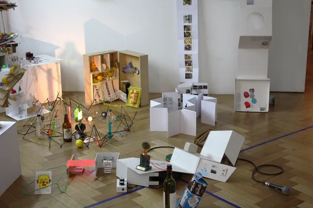 In this exhibition, students present a series of fictional archives composed through a process of exploring entwining narratives derived from readymade objects and from found material within the West Space archive. Initially producing a desktop assemblage, the students extrapolated the project into a Duchampian style portable museum. The resulting propositions function both as artwork and as presentations for displaying fragments of the West Space Reading Room Archive.