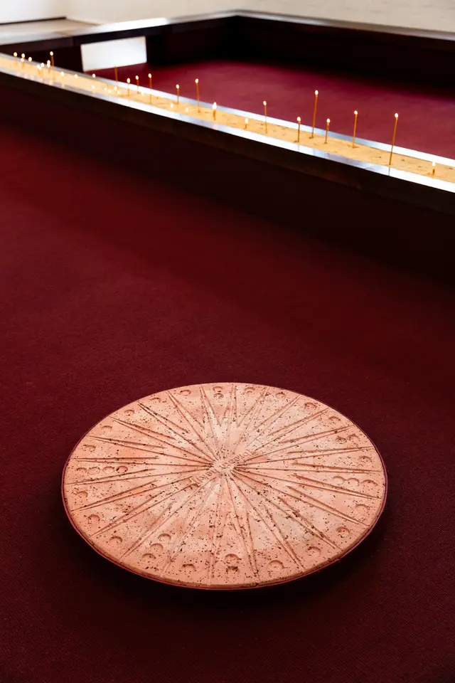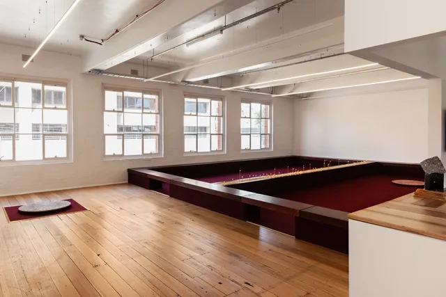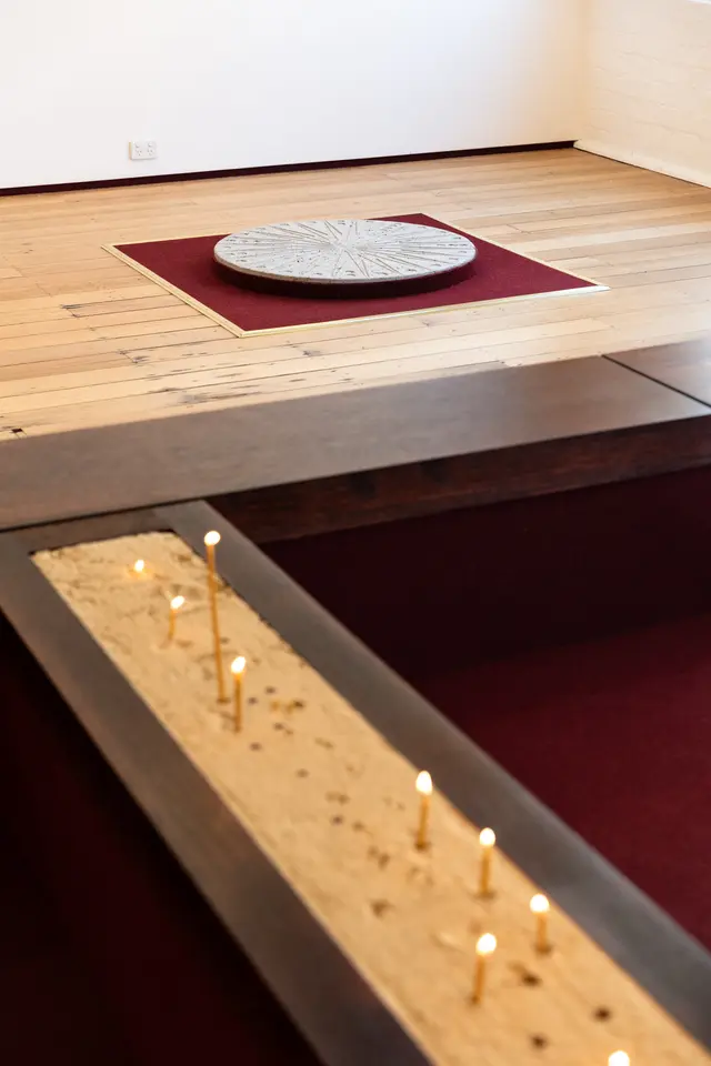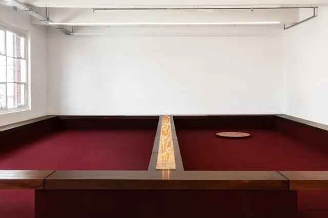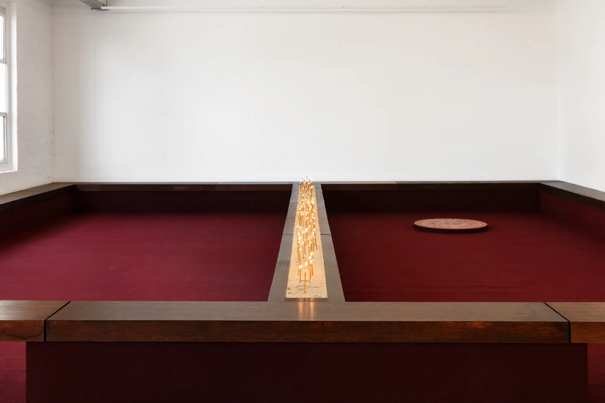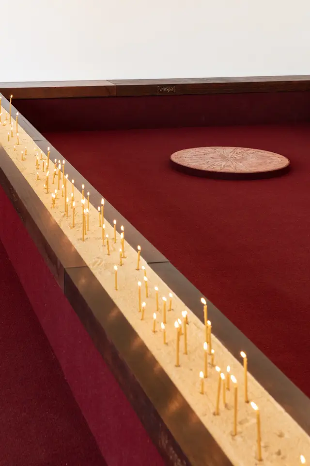 The site of Motet Fail takes the backgammon table as a starting point. Working with artistic collaborators Romanie Harper and Aldo Bilotta, Stefanou transforms West Space into a site for reflection, encounter and concert. A 5,000-year-old game with origins in the ancient region currently known as Iran, backgammon emerged as a game of Empire, spreading across West Asia and Europe along routes of trade, cultural exchange and conquest. Historically, the rules of backgammon have been known to shift depending on one’s position in society. In art history, the game has appeared as a symbol of vice, gambling, skill, and chance. Within the hellish scene of The Garden of Earthly Delights (1510), Dutch painter Hieronymus Bosch used it to signal moral decay and a descent toward damnation.